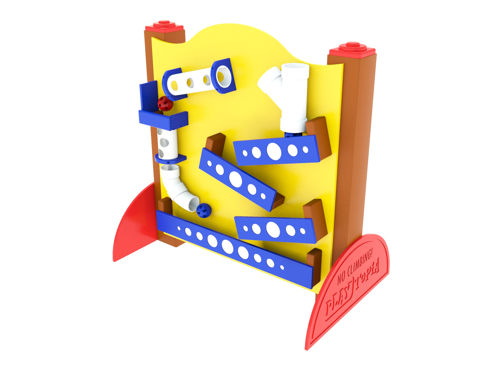 Teach the power of cause and effect with our versatile, free-standing Contraption Panel. Perfect for educators, this panel allows students to physically explore and comprehend this fundamental concept. Physics is fun! Whether used in a portable setup or mounted into the ground, it is sure to engage and inspire young minds. (Balls not included)