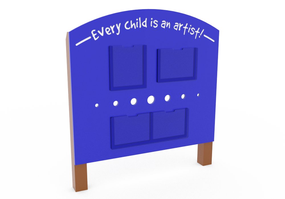Unleash the creativity of young minds with our Artistic Activity Panel. Featuring the inspiring message "Every Child is an Artist," this engaging panel encourages children to express their artistic talents. Equipped with multiple slots and holes for showcasing little artists' work, this panel is perfect for playgrounds and educational environments. Made from durable, weather-resistant materials, it ensures long-lasting use and enjoyment. Add a touch of creativity to your play area and inspire the next generation of artists with this versatile and fun activity panel.